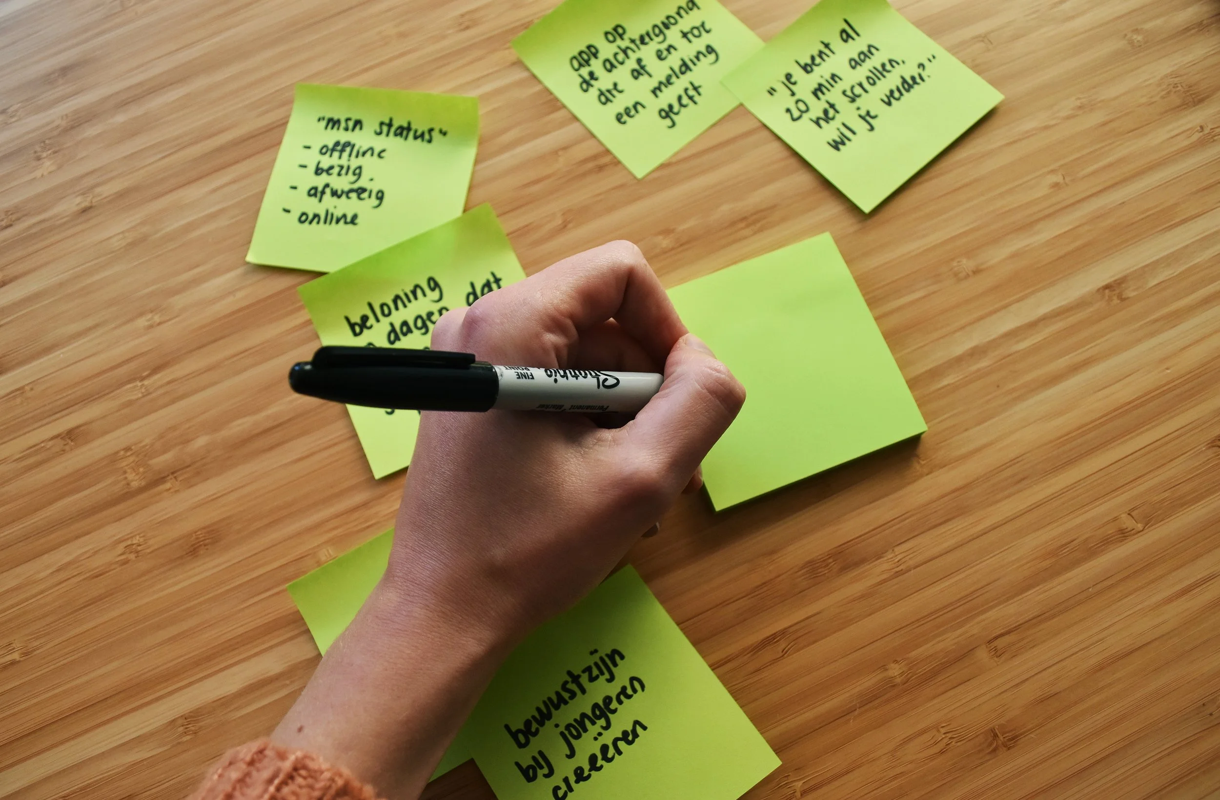 We hebben een stapel ideeën. En nu? We duiken kort de theorie in over effectief ideeën selecteren en gaan daarmee aan de slag. Van alle ideeën komen we tot een gezamenlijk besluit: dit is hét gouden idee waarmee we verder willen ✨